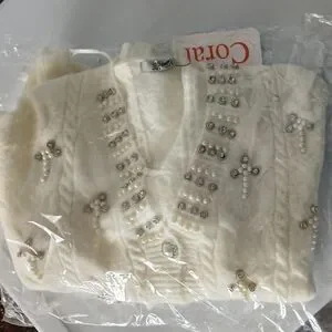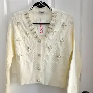 Cable knit with pearl & Rhinestone buttons