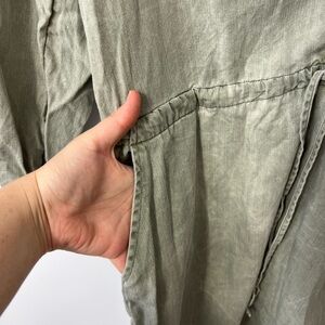 Stylish grey/green tunic dress with button-up front and drawstring waist. Perfect for casual outings.