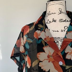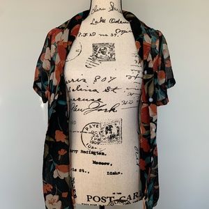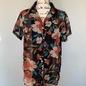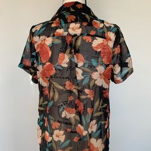 Never Worn Before! A meshy, see-through, floral shirt. Relaxed fit. As all the clothes I sell, it has no flaws. If you want to know the specific measurements, feel free to request them! :)