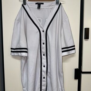 Button-down Oversized Jersey - US S - Unisex - Black - White - Forever 21