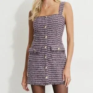 Buttoned Tweed Mini Dress