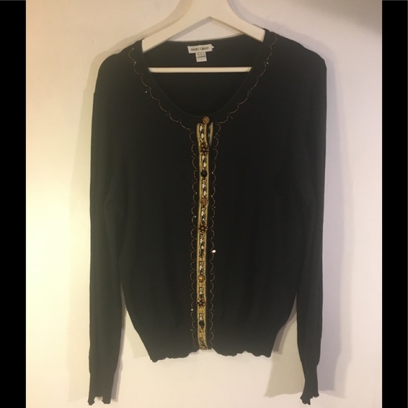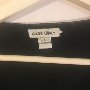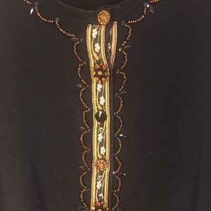 Andre Oliver black sweater with beautiful beading around the scoop collar all the way along