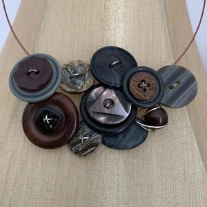 Always get comments, just do not wear it enough. Purchased handmade and as upcycled. Love it. Mixture of buttons pendant on wire necklace. Pls see photos for details.