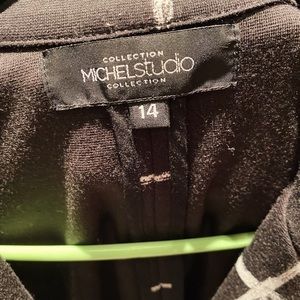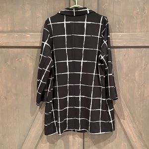 The perfect work blazer. Fits longer. Made of 95% polyester and 5% spandex. Dry clean only.