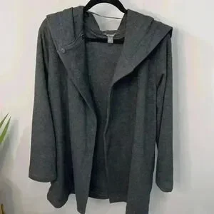 Joe fresh button-up cardigan. Its a two clasp button up cardigan near the neckline as seen in the photos. dark gray in colour in brand new condition never used also has pockets.