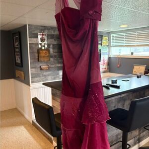 This stunning women's dress features a beautiful blend of pink and purple hues, perfect for any special occasion. The elegant design and vibrant colors make it a standout piece in any wardrobe.