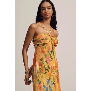 By Anthropologie Halter Slip Dress Yellow Floral S