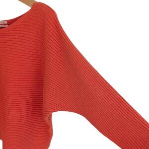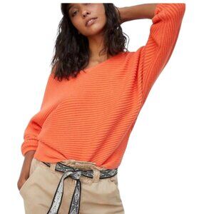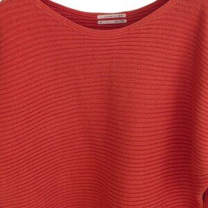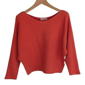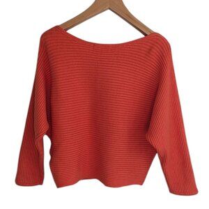This is an orange boat neck sweater in a rib knit from by Anthrpologie.