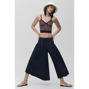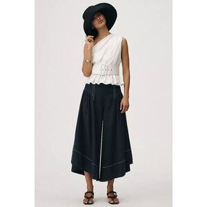 By Anthropologie Linen Extended Waist Wide Leg Pants NAVY 12