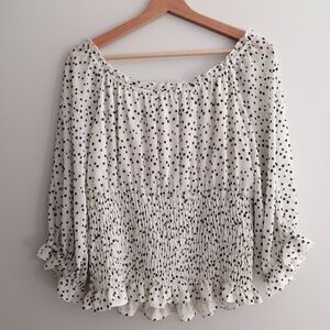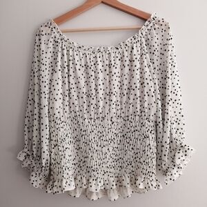 By Anthropologie Lucia Off the Shoulder Polka Dot Smocked Blouse Large