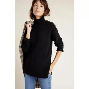 By Anthropologie Margarita Button Collar Mock Neck Sweater