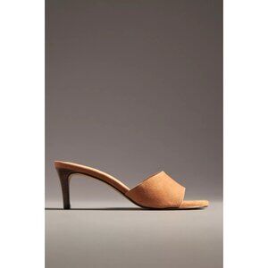 By Anthropologie Open-Toe Leather Kitten Heels Camel Beige 41/10