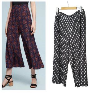 By Anthropologie Pants Wide Leg Cropped Culottes Trendy Boho Hippie Black M