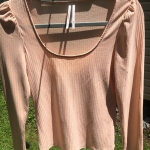 By Anthropologie Peach Size XS puffed pleated shoulder long sleeve Scoo…