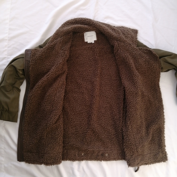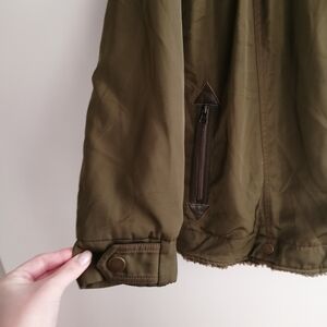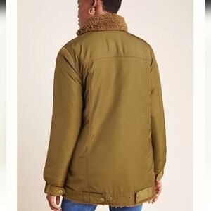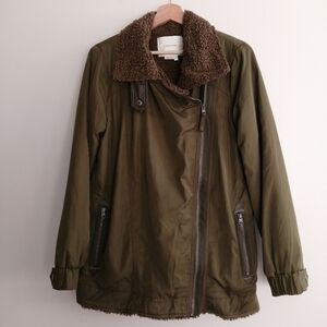 By Anthropologie Sherpa Lined Parka Jacket Olive Green and Brown