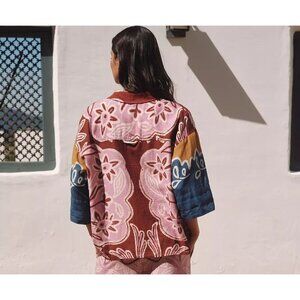 By Anthropologie Short-Sleeve Printed Linen Button down Shirt 3X Plus Size.