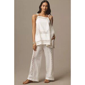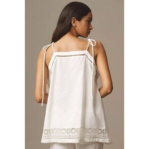 By Anthropologie Tie-Strap Linen Hanky Cutwork Lace Tank M