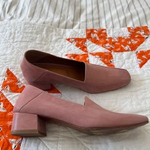 By Far Blush Suede Square Toe Pump Heel Loafers 37 6.5 7