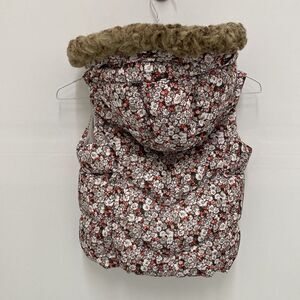 By GAP Kids White Brown Floral Hooded Puffer Vest Small