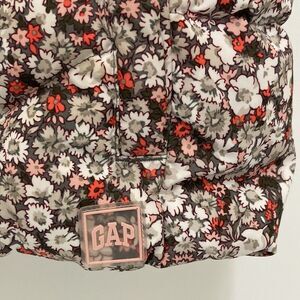 GAP Kids White Brown Floral Hooded Puffer Vest Small