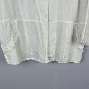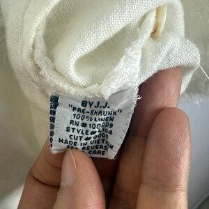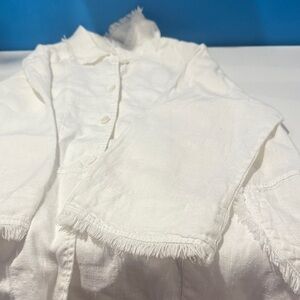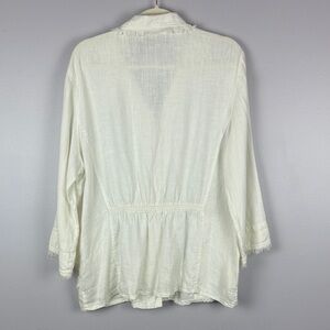 By JJ 100% Linen Stylish White Linen Blouse with Fringe Detail Size Large