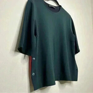 Beautiful & unique top. Green with side buttoned snap detail, blue & red side panel.
