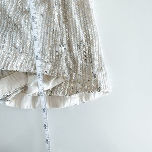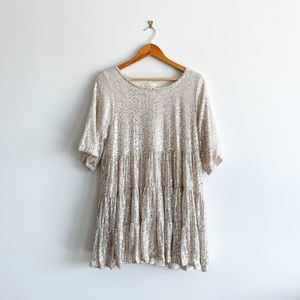 Elegant mini dress with shimmering sequins. Features a tiered design. Perfect for special occasions.