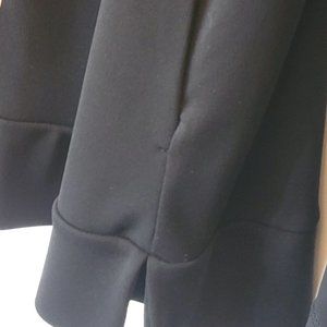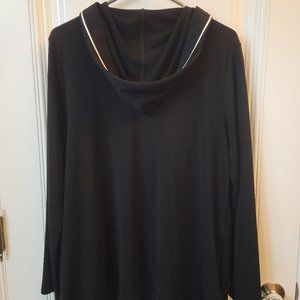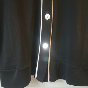 Bylyse Spenard, EUC, Size XL, according to flatlay measurements, Made in Canada, black button down hooded lightweight jacket/cardigan, with white piping details, silver metal branded buttons, 2 side pockets, slits along the side hemline per pics. Great weight for spring or fall or as a layered piece in the winter. No visible marks, stains or tears. It appears to be in new condition.