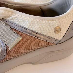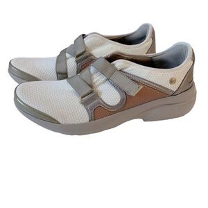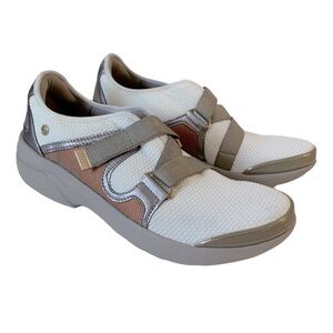 Comfortable athletic shoes with a stylish design. Features a breathable mesh upper. Easy slip-on style with adjustable straps.