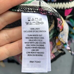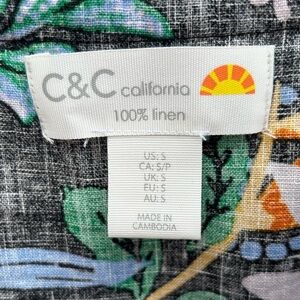 C & C California Linen Floral Blouse. Square neckline, pouf sleeves, slight crop.