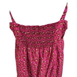 C C California Maxi Dress Sundress Large Smocked Tiered Cotton Pink Red Floral