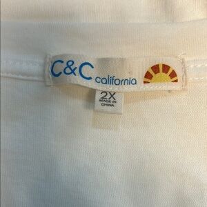 C & C California White Graphic Tee Sunny Plus Size 2X Yoga Gym Exercise Walk Sun