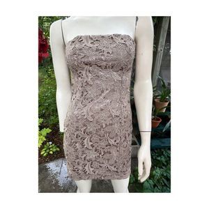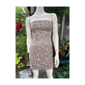C. Luce Nude Lace Sheath Dress Strapless Mini Evening Party Sz S