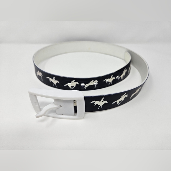 I have a really nice C4 Belt with a cool rider jumping design. The belt is dark blue/navy color with white design and white buckle.