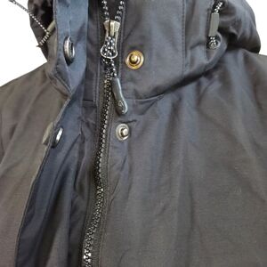 Durable and weather-resistant. Features a hood and secure button closure. Ideal for outdoor activities. Length 27" Bust 42" sleeves 25"