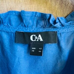 Very delicate and thin blouse made of 💯 batiste cotton has a polo fastening trimmed with ruffles along the neckline and neck. There is nothing better than this blouse in hot weather!