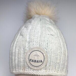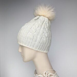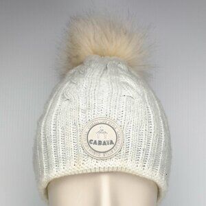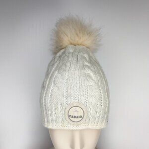 CABAÏA Light Grey Neutral Pompon Cream Faux Fur Preppy Winter hat