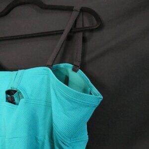 This vibrant turquoise tankini top offers a flattering and supportive fit