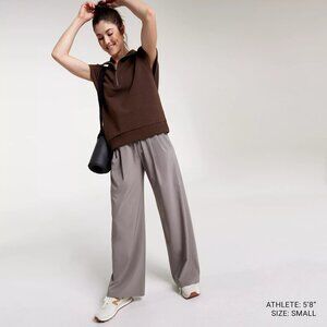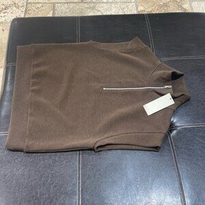 Relaxed fit sleeveless 1/4 zip shirt Stand collar with exposed metal zipper opening