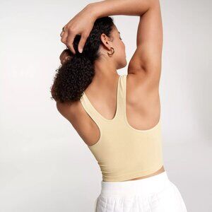 New ⬆️see pictures Style# WAX37408 Color: Oatmilk Light level of support. Ideal for activities like yoga, stretching, pilates and barre Fit & Design: Fitted sports bra Seamless, comfortable design Long line silhouette provides additional coverage Internal shelf bra with removable cups for just-right support Racerback strap design sits between your shoulder blades for a fuller range of arm movement CALIA™ logo graphic This versatile design can be worn as a bra or tank top Technology: BODYFREE technology inhibits odor-causing bacteria and with an incredibly resilient application directly on the fabric, it lasts wear after wear so you stay fresh BODYBREEZE wicking technology pulls moisture away from the skin and boasts a rapid evaporation time so you stay dry, cool and comfortable 88% nylon / 12% spandex MC 566* $35 USD