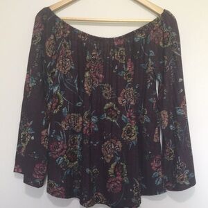 California moonrise a nomad art house collaboration off shoulder burgundy rose print long sleeve shirt