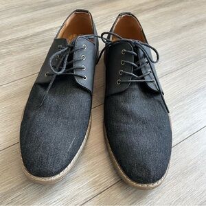 These fabulous condition men’s vegan lace up oxfords are in a dark denim canvas with a muted navy vegan nubuck accent.