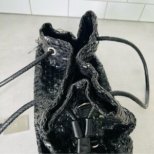 Very good condition, some minor signs of wear on the leather and hardware. Genuine leather. Made in India. Drawstring style with snap closures.