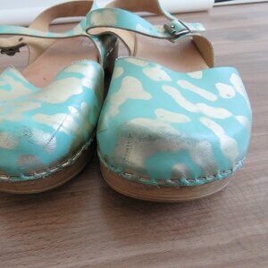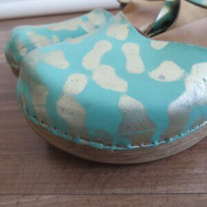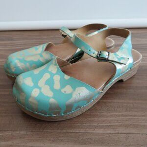 CALOU SYSTER JANE Abstract Blue Metallic Mary Jane Swedish Clogs - Size US 7.5