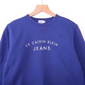 CALVIN KELIN JEANS Logo Blue Sweatshirt, Crew Neck, Long Sleeve, Soft, Stretchy