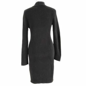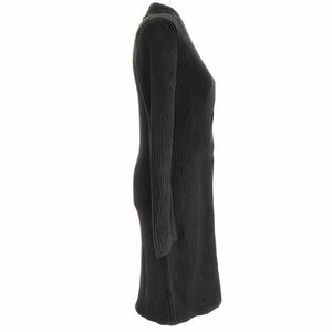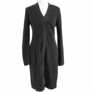 CALVIN KLEIN BLACK V-NECK FRONT CABLE KNITTED LONG SLEEVE MIDI DRESS - M