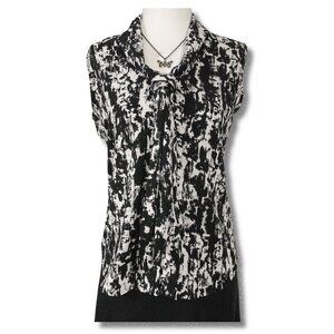 CALVIN KLEIN Black and white abstract ikat print sleeveless blouse XS SMALL top