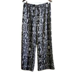 CALVIN KLEIN, Black and white, elastic waist, drawstring, python/snake print, wide leg pants, size medium.