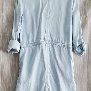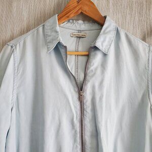 CALVIN KLEIN Chambray Denim Shirt Dress Roll-up Sleeve Zip Up Drawstring *READ