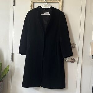 CALVIN KLEIN | Collarless High Neckline Elegant Black Women's Wool Coat